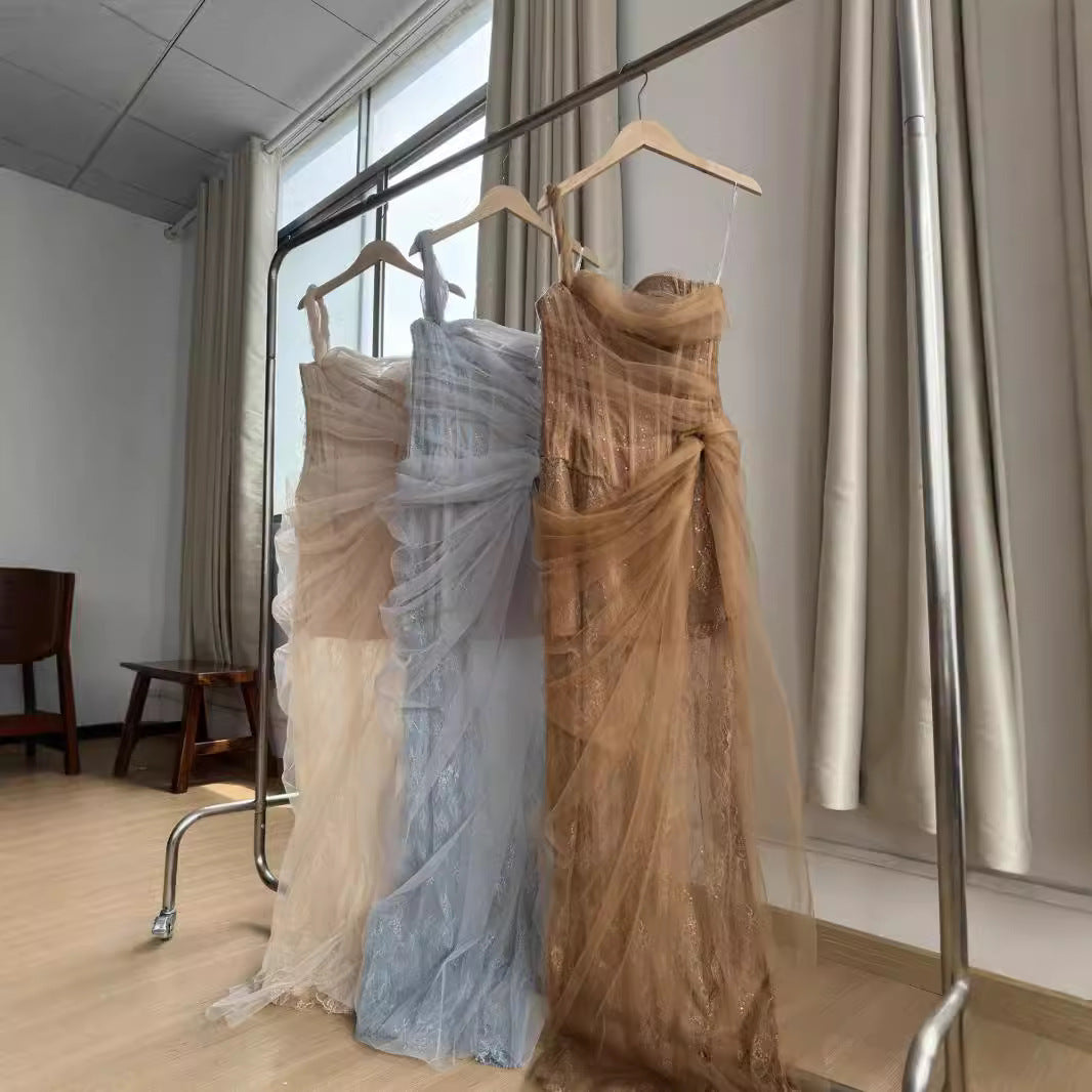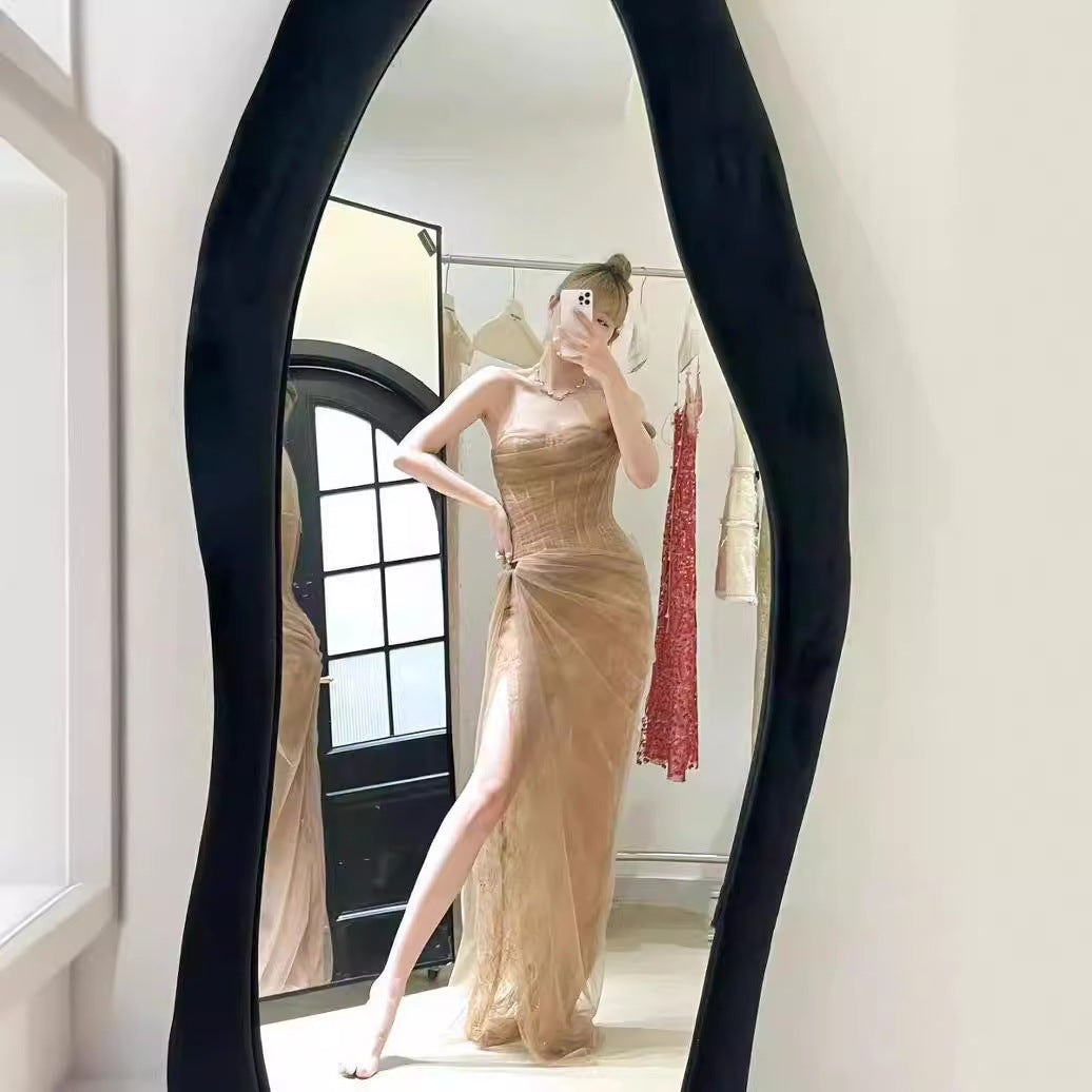Women's Lace Tube Top Fishbone Split Dress